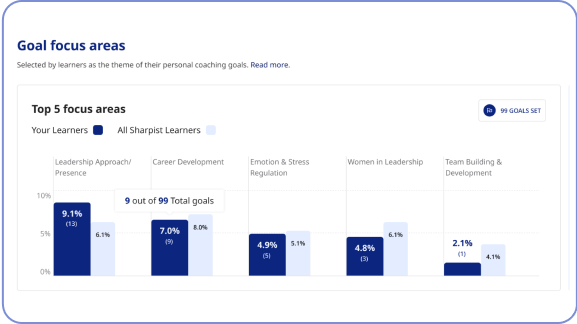 umsetzbare Einblicke in den Fortschritt aller Teilnehmer. Die Ziele jedes Lernenden werden individuell